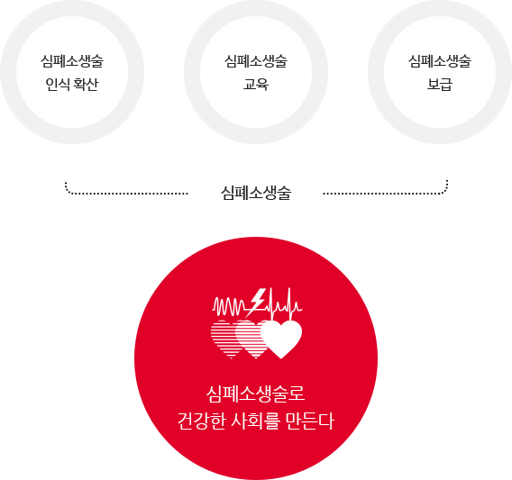 '건강한 사회를 만든다'는 '심장정지에 대한 인식 변화와 심폐소생술 보급으로 심장정지 발생률이 낮아지고 심장정지가 발생하더라도 생존사슬을 통하여 생존할 수 있음으로써, 사회적으로는 심장정지로부터 안전하고 개인적으로는 심장정지로부터의 완전한 회복이 가능한 사회를 만든다'라는 의미이다.